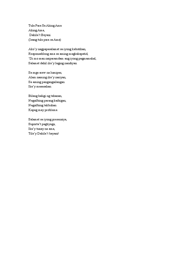 Isang Maikling Kwento ng Aking Buhay. Tula Tungkol sa Ina 10 Tula - FILIPINO. Na ang pagsinta mo ay di maglaho.