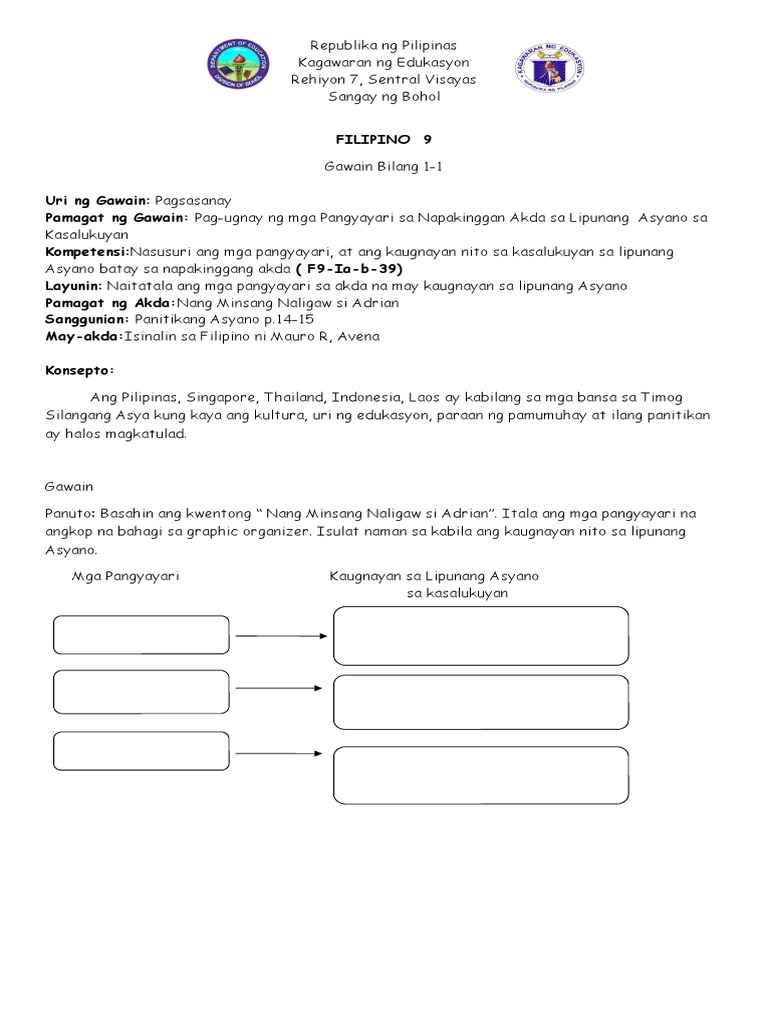 Magkarugtong din daw ang Luzon Bisaya at Mindanaw. Bilang Asyano ang pagpapahalaga sa pamilya pa rin ang nauuna kahit anuman ang sitwasyon. Panitikang Asyano - Maikling Kuwento ng Singapore Unang Edisyon 2020 Isinasaad sa Batas Republika 8293 Seksiyon 176 na.