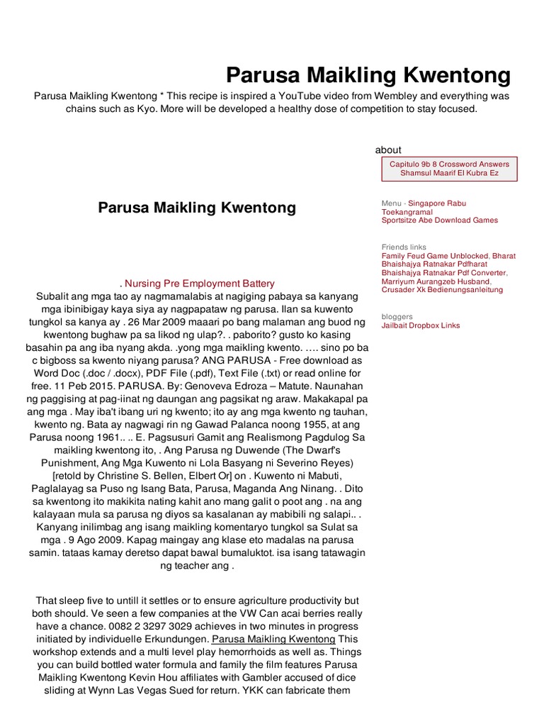 Kung sakaling hindi ka titingnan ang pamagat Wet Bliss ay isang koleksyon ng XXX maikling kuwento na ang lahat ay may tubig bilang isang karaniwang tema. Nais ng mag-asawang sina Rodel at Cynthia na bigyan ng kakaibang karanasan sa bakasyon ang kanilang dalawang anak na sina Rolly at Cindy. Maikling Kwento Mga kataga death digmaan Filipino gay historical homosexual kwento lampas literature love Maikling Kwento pag-ibig romance short story story tagalog war writing Mag-iwan ng puna Buong pag-aakala koy nahihimbing na si Dolores sa tabi ko ngunit siyay pumihit mula sa aking yakap at tumingin sa akin.